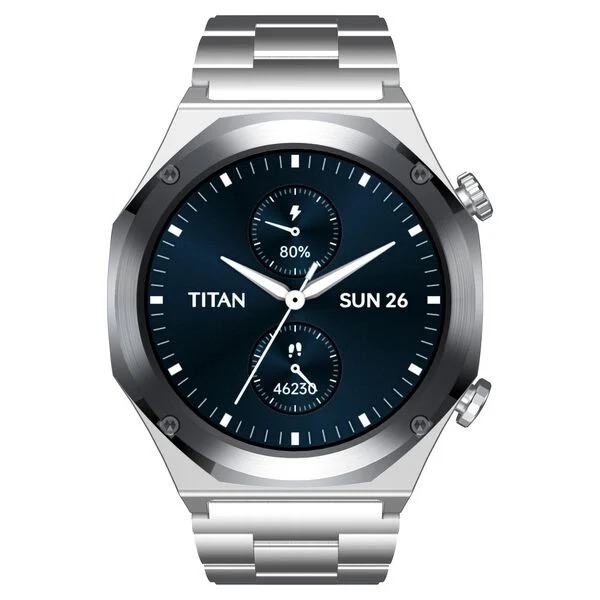 Titan Maestro Premium Smartwatch features a 3.6 CM AMOLED display with 466x466 resolution housed in a sleek, durable 3-piece all stainless steel construction.